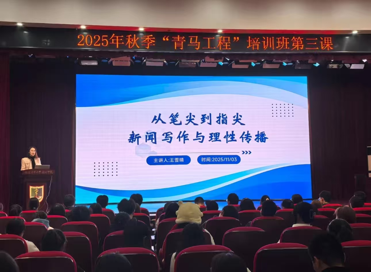 学院党委组织宣传部王雪晴老师从“新闻写作与基础知识”、“好新闻是怎样练成的”和“真相的滤镜与盲区”三个板块由浅入深,对新闻写作进行全面的分析讲解。现场,王老师还通过结合典型案例,指出好的新闻一定要把牢“三关”。最后,她提出新时代青年网络素养“四问”,呼吁同学们打破信息茧房、理性发声。